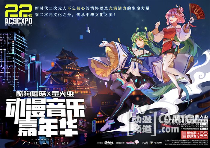 2019年7月18日-21日(一共4天)由萤火虫文化主办、酷狗音乐联合主办的第22届酷狗蘑菇×萤火虫动漫音乐嘉年华,盛大登陆广州保利世贸博览馆4/5/6号馆。超百个国创IP来袭,近百位次元红星齐聚给你们带来一场不一样的二次元文化狂欢盛会。
